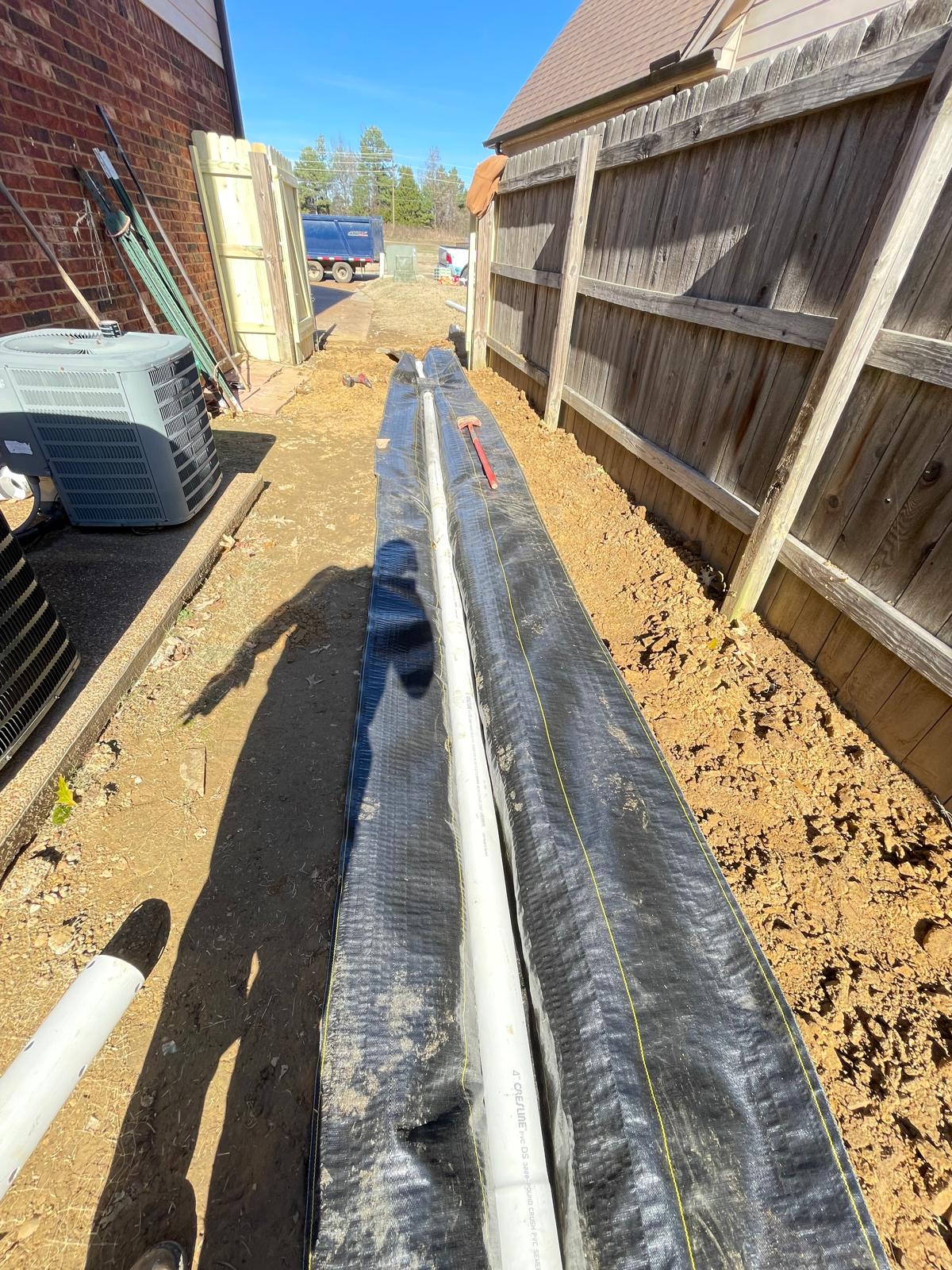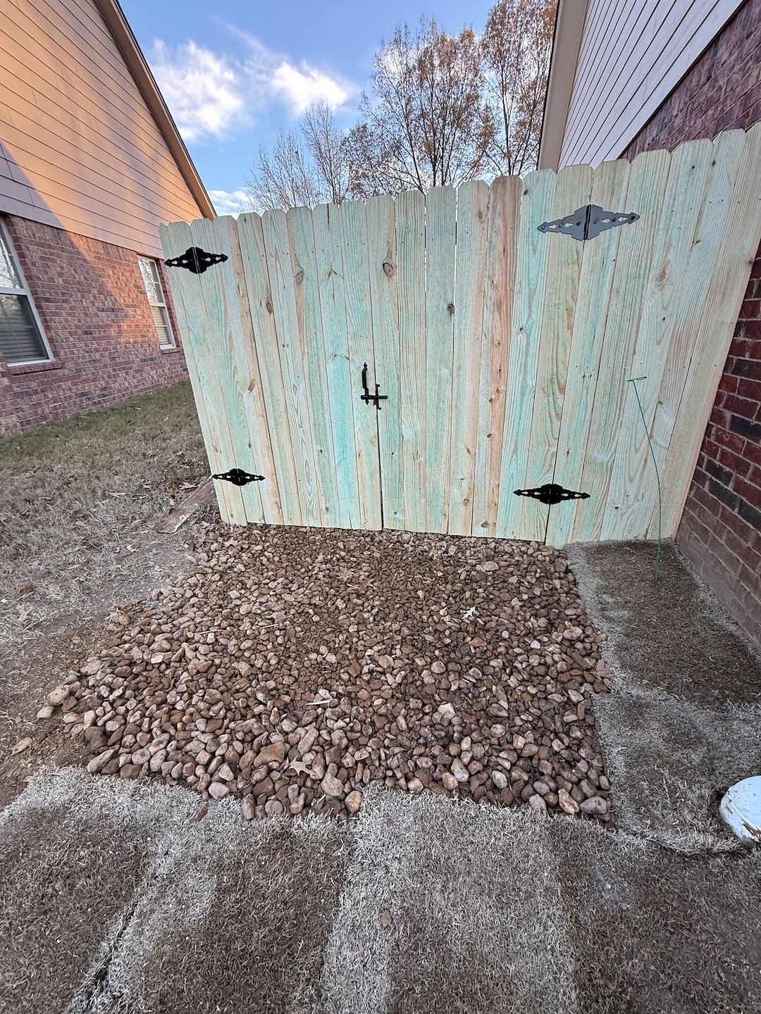 Brigman Home Services completed a fence and drainage project in Hernando, MS that addressed both a damaged entry gate and water building up near the home. The work combined a replacement of a double gate with a targeted drainage installation to move water away from problem areas on the property.