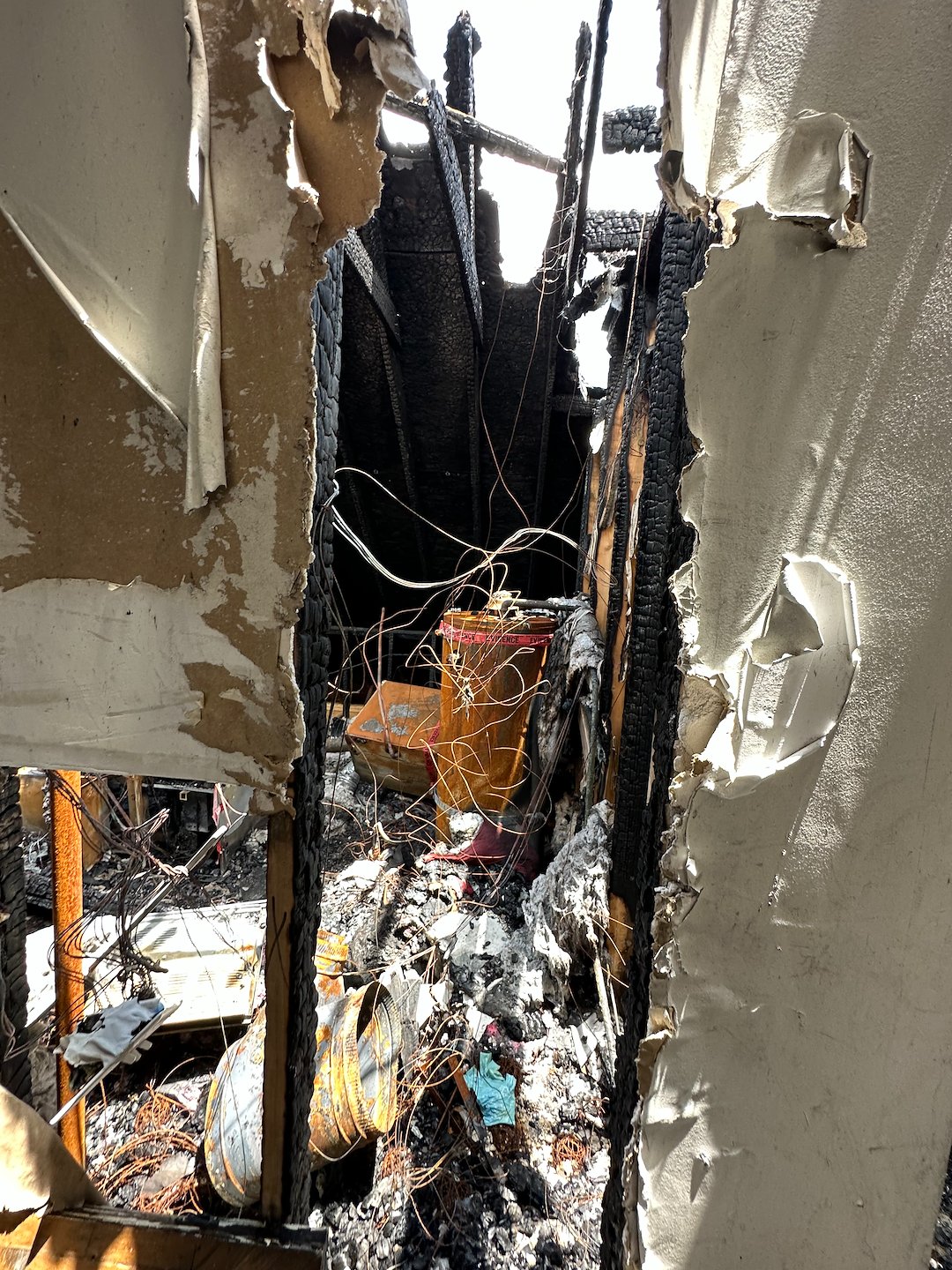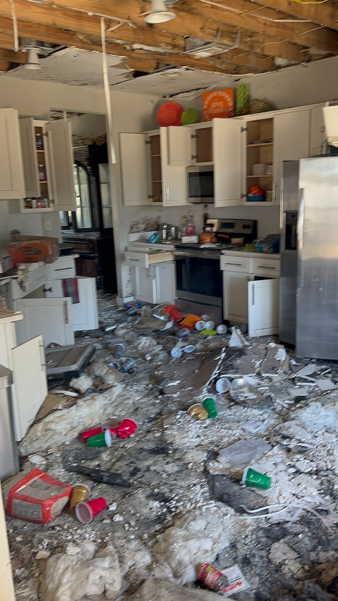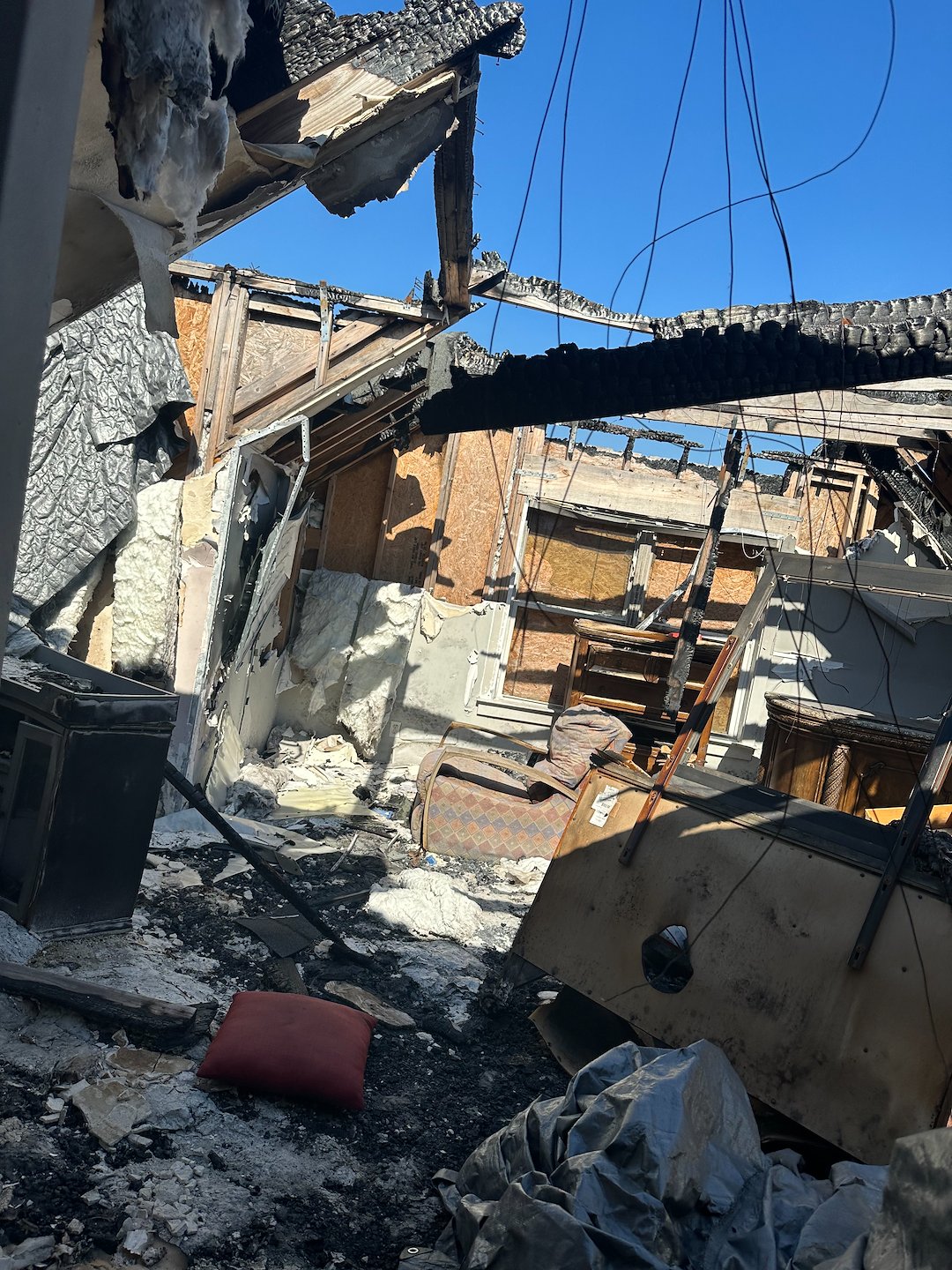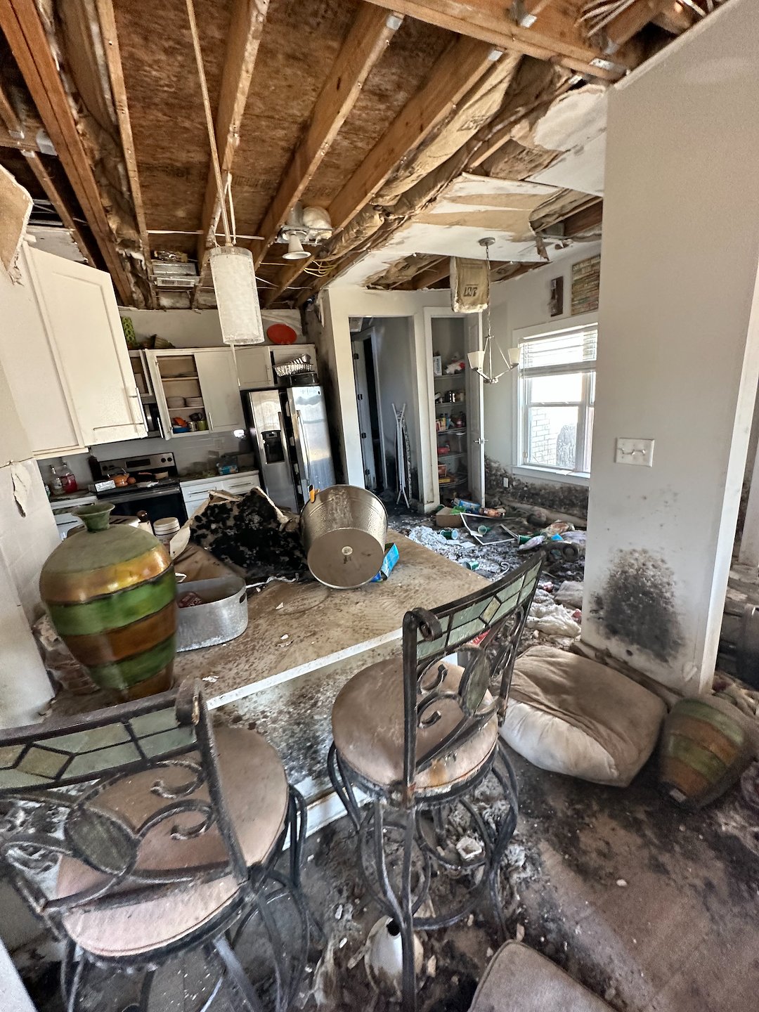 The first step was a total gut of the interior, removing damaged finishes, fixtures, and contaminated materials. Because the water had caused severe deterioration, the second story needed to be reframed from the studs up. We also installed new structural beams where water damage had caused a sag, restoring proper support for the floors and roof framing.