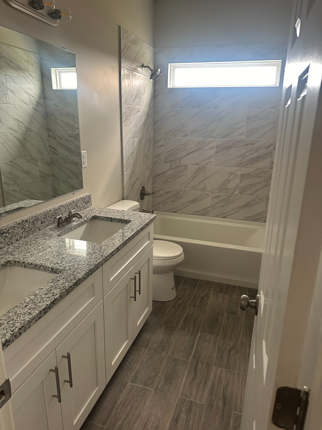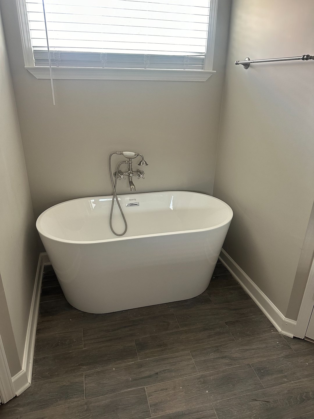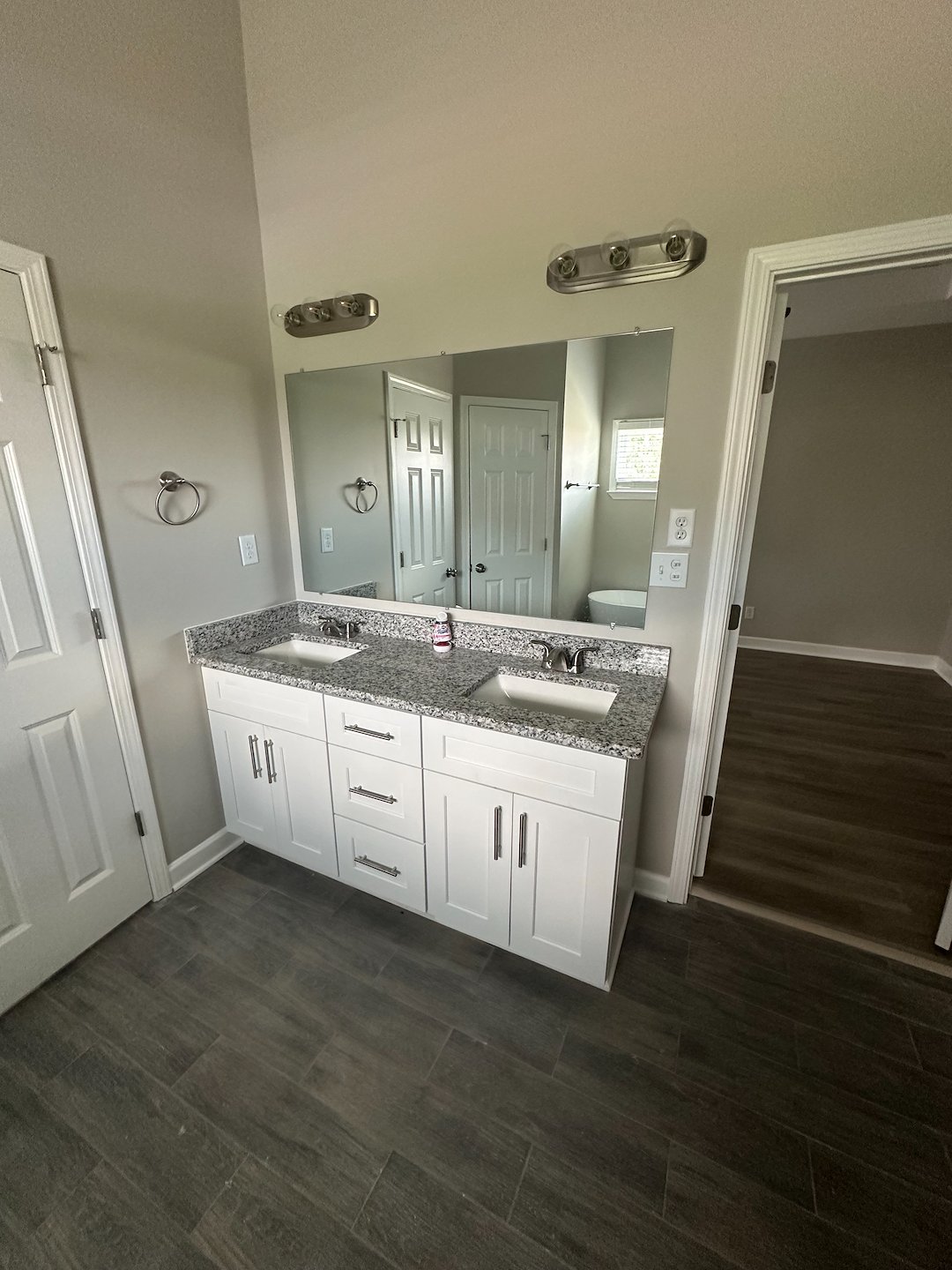 We replaced windows throughout the house to make it weather-tight and energy efficient. Interior finishes were rebuilt with all new insulation and drywall, followed by professional painting to restore the look and protect the surfaces. New tubs were installed in the bathrooms, and we finished the kitchen and bathroom surfaces with new granite countertops, providing durable and attractive surfaces for the homeowner.